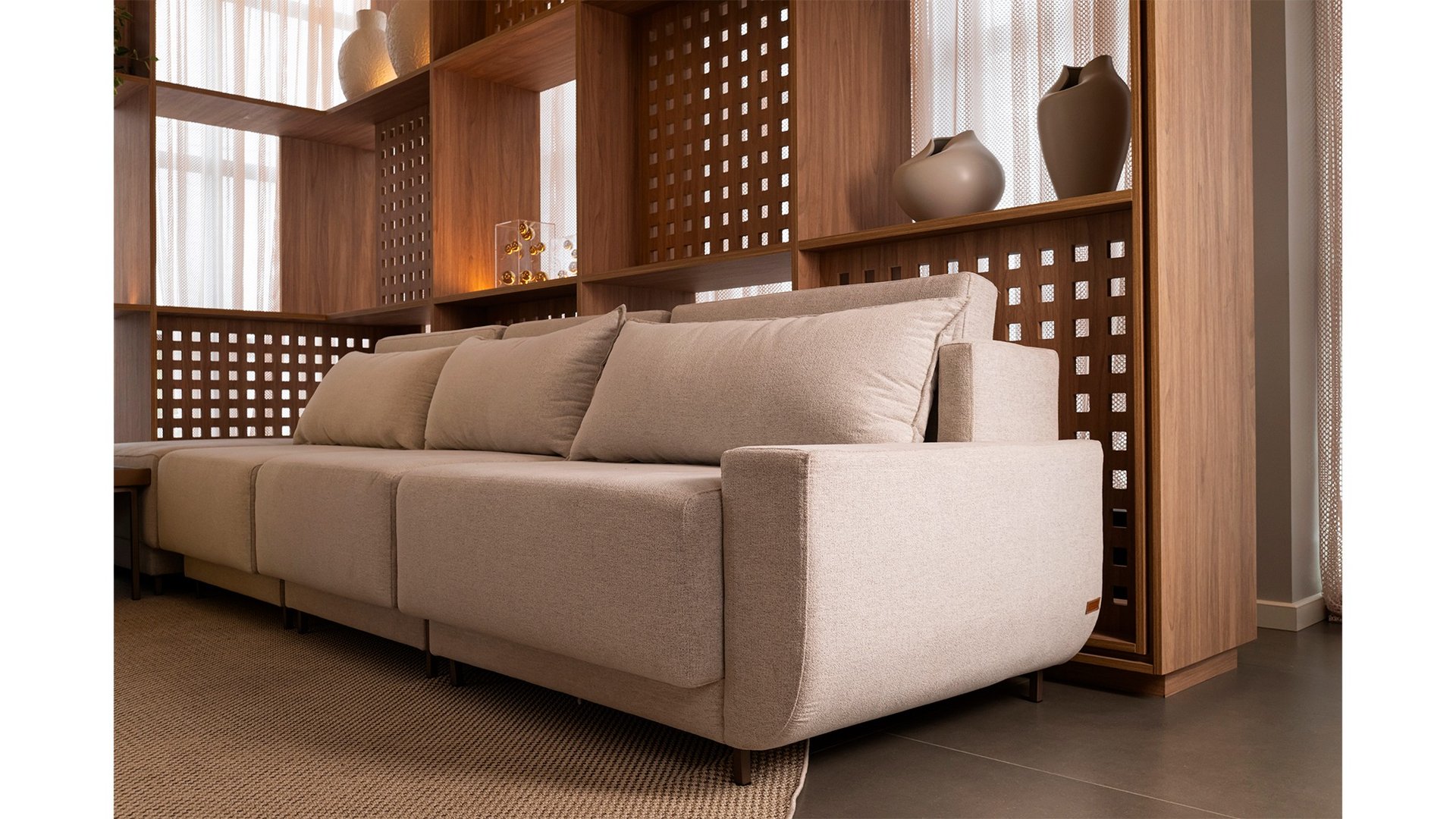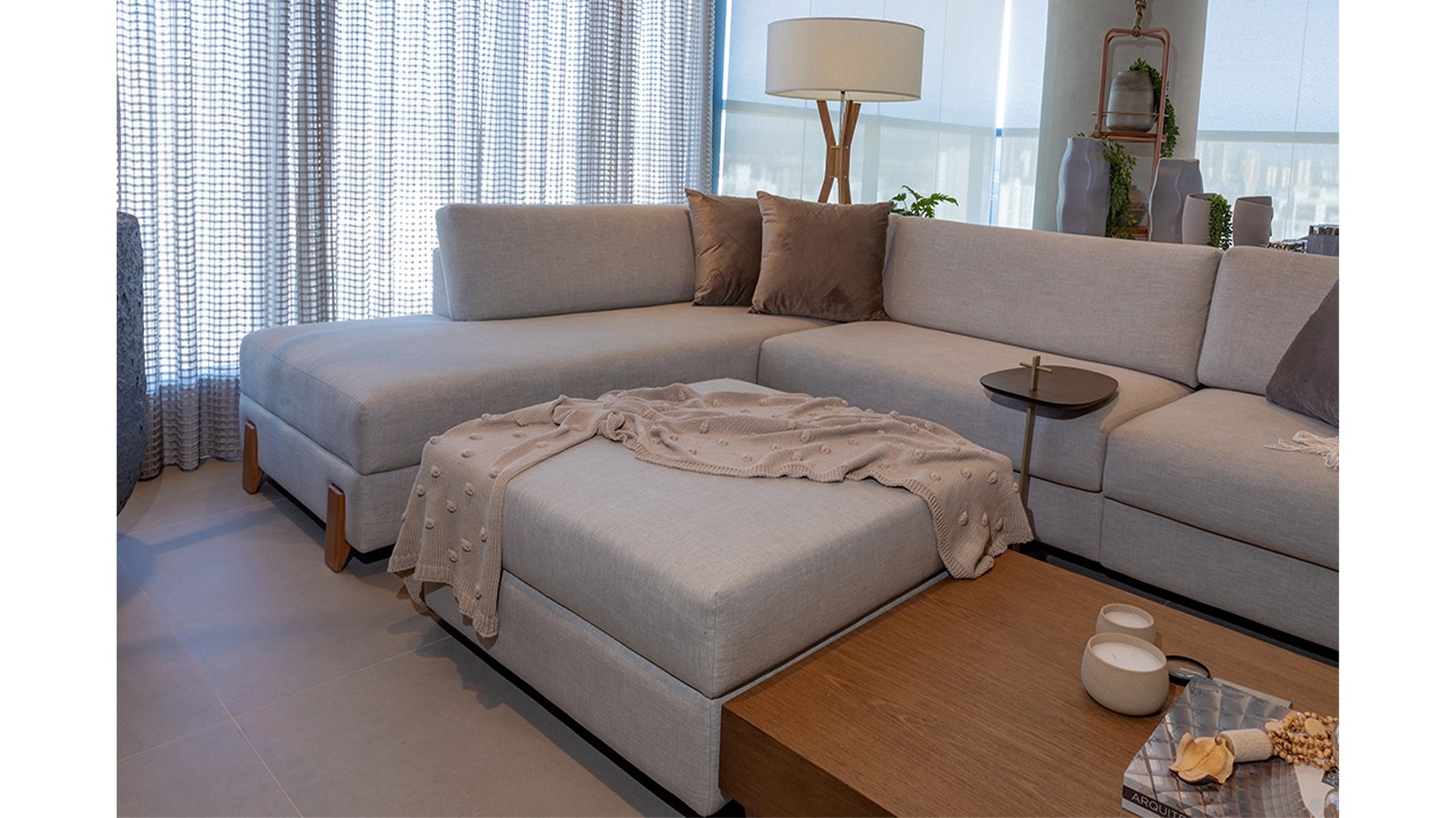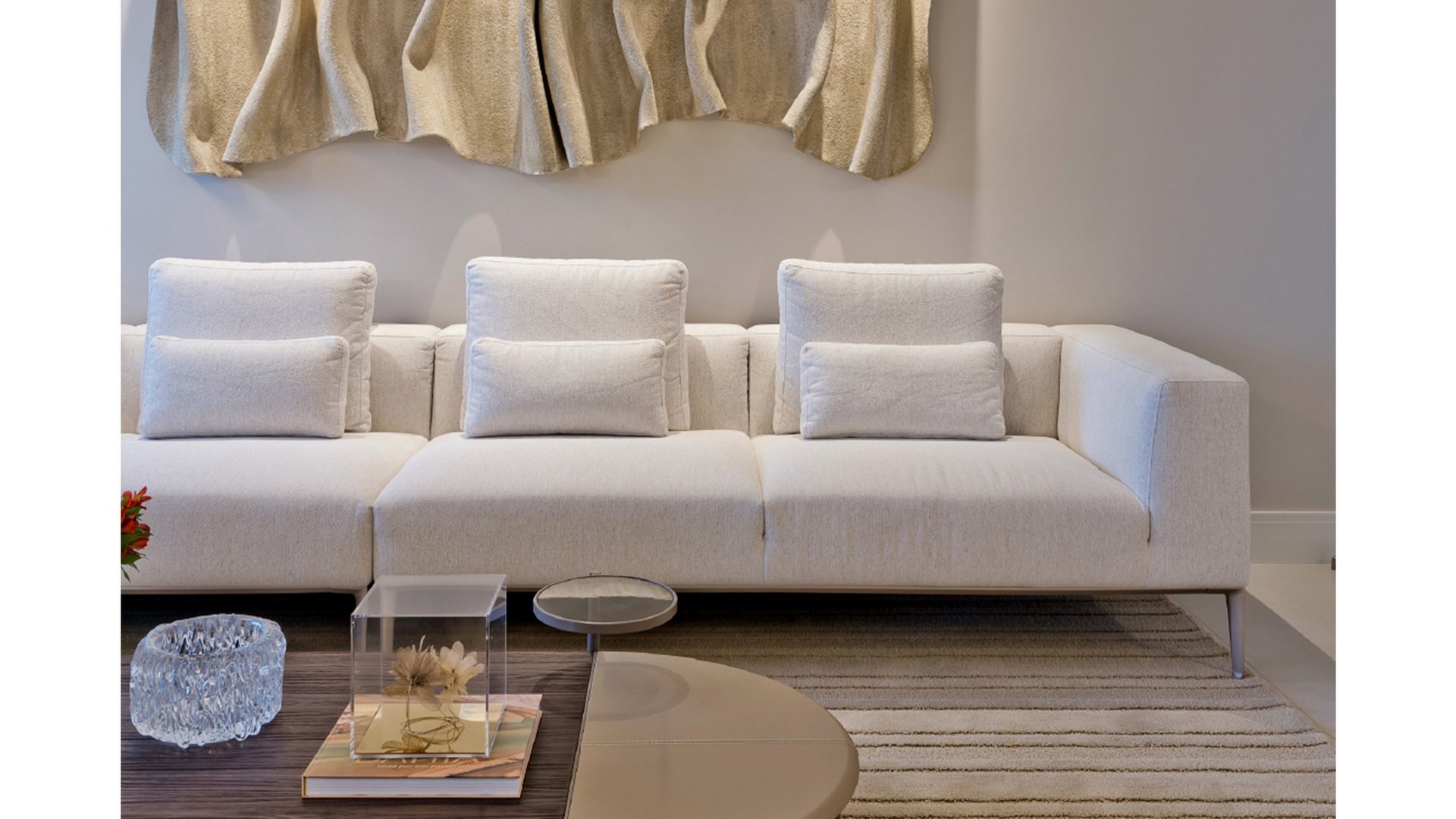 Estas soluções incluem sofás integrados, bancos estofados e cabeceiras personalizadas, desenvolvidos para projetos de interiores completos. Estofados integrados feitos à medida