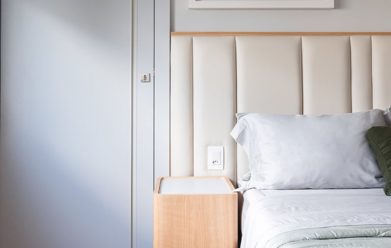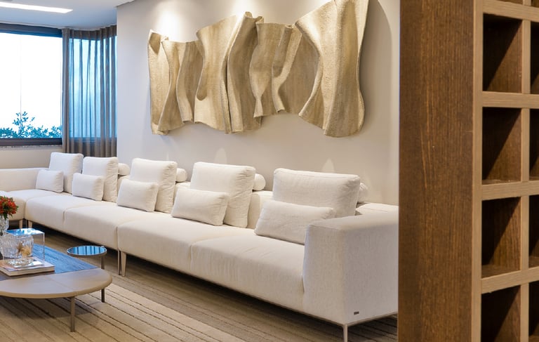 Design pensado ao detalhe, com estofados personalizados e mobiliário à medida integrados no próprio espaço. Cada solução é estudada em conjunto com o layout, a iluminação e os materiais envolventes.